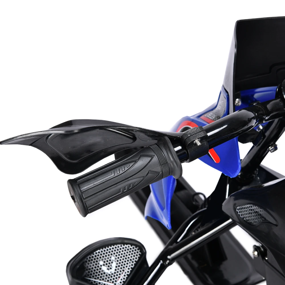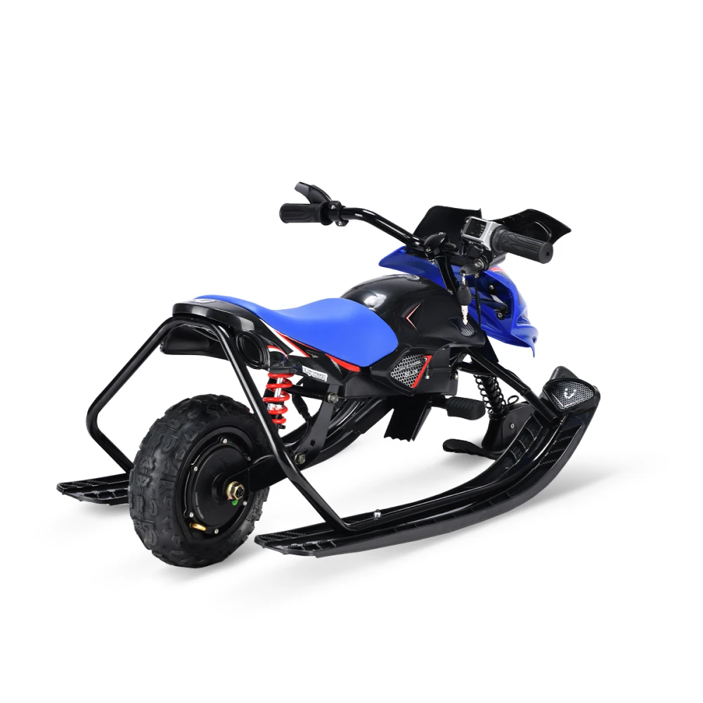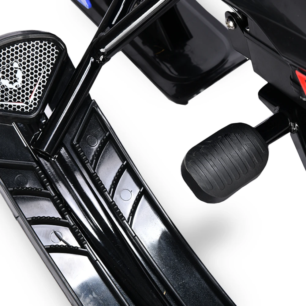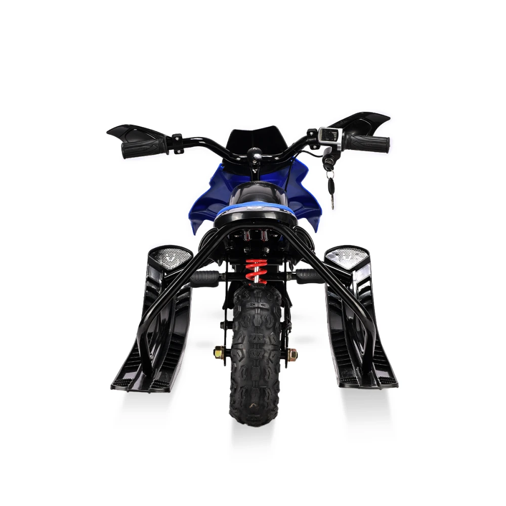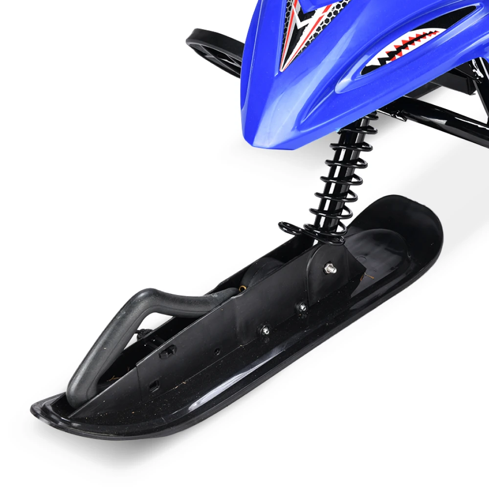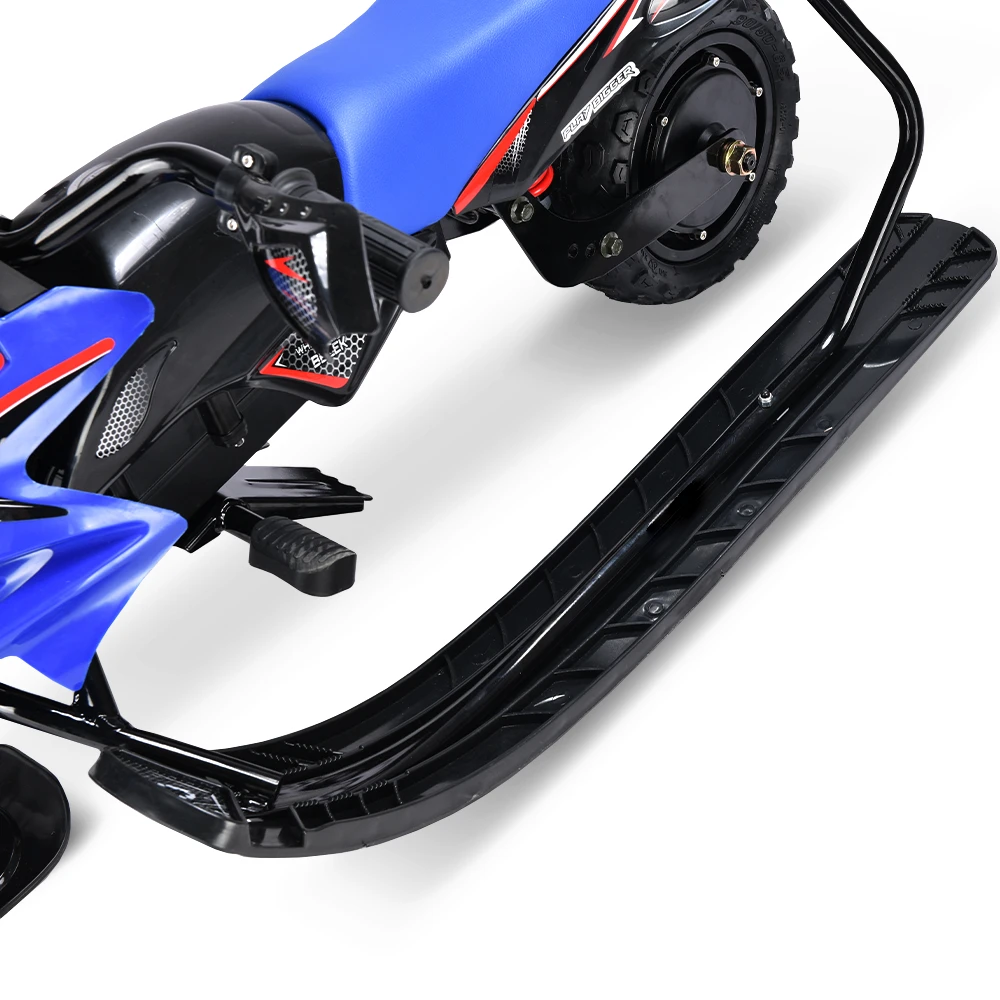 Тормоза этого электроснегоката представлены в двух вариантах: электронный и механический, что обеспечивает безопасность и полный контроль над снегокатом во время катания. Благодаря заднему моторному колесу и трём лыжам, дети смогут легко маневрировать и контролировать снегокат на любой поверхности.