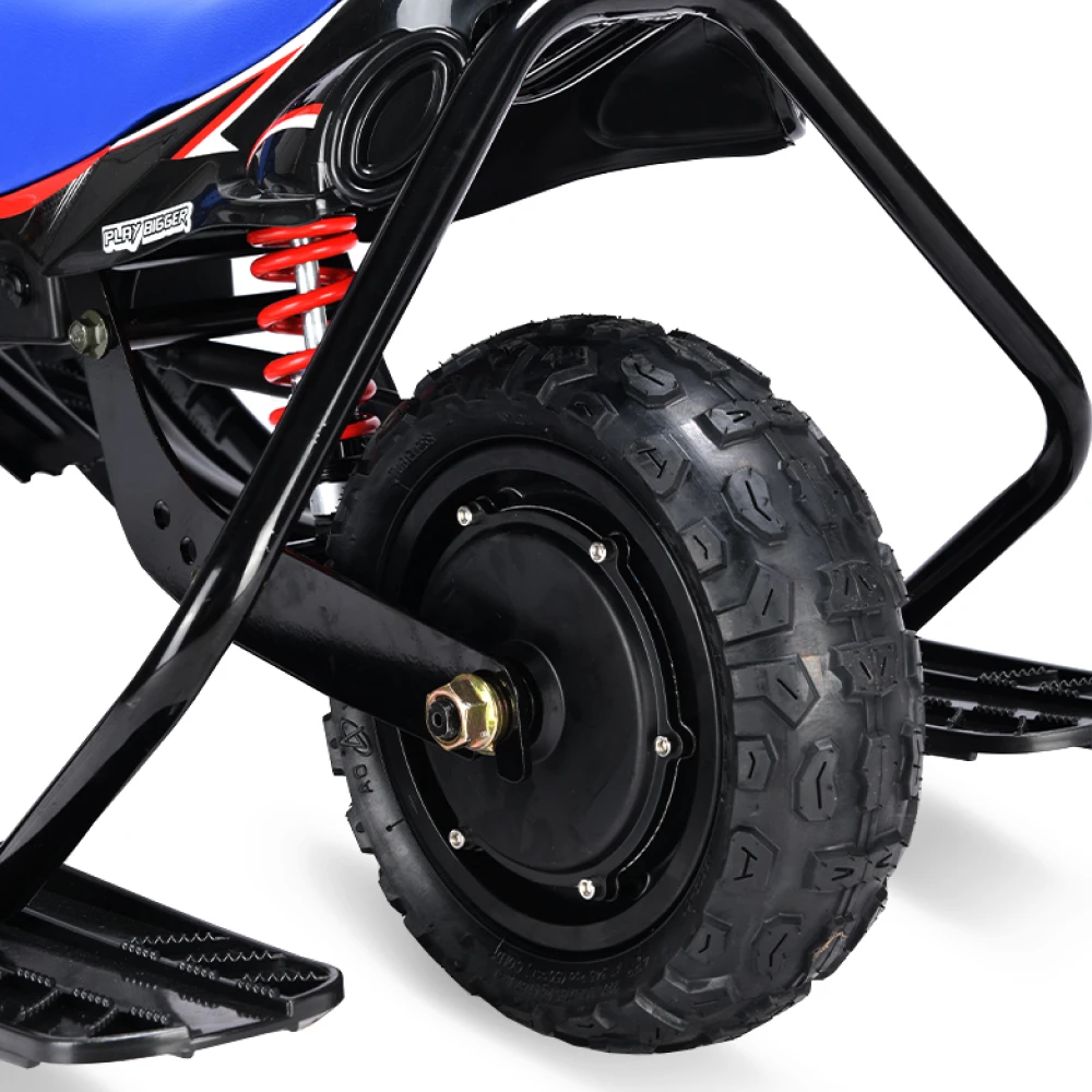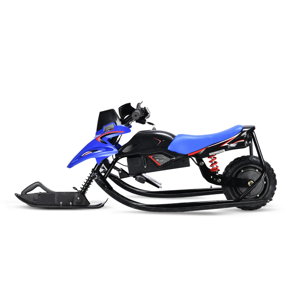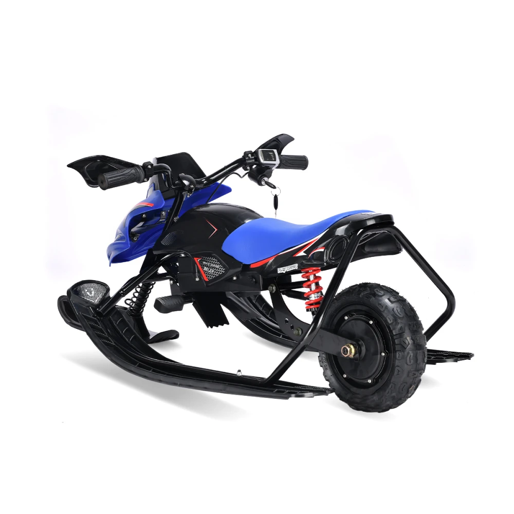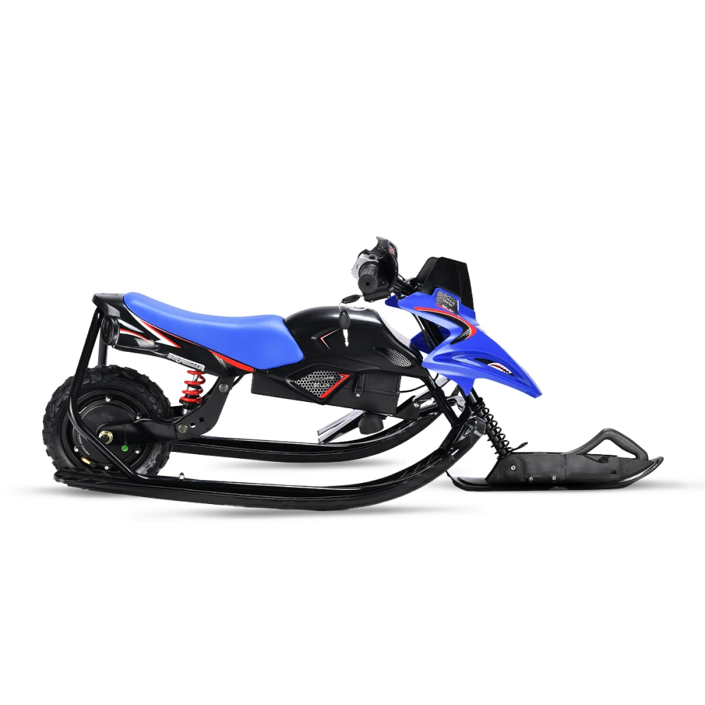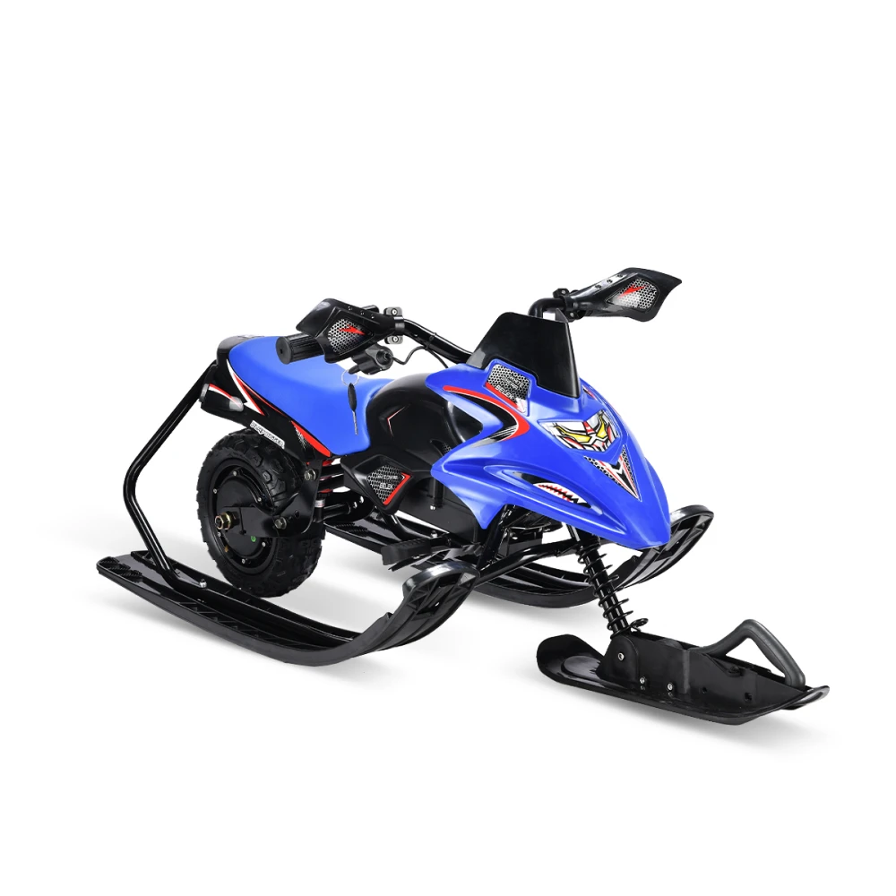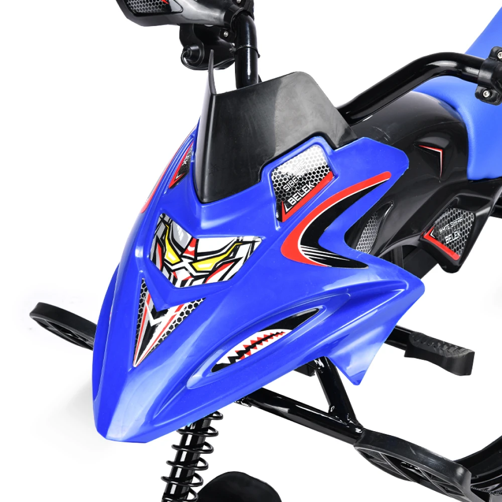 Тормоза этого электроснегоката представлены в двух вариантах: электронный и механический, что обеспечивает безопасность и полный контроль над снегокатом во время катания. Благодаря заднему моторному колесу и трём лыжам, дети смогут легко маневрировать и контролировать снегокат на любой поверхности.