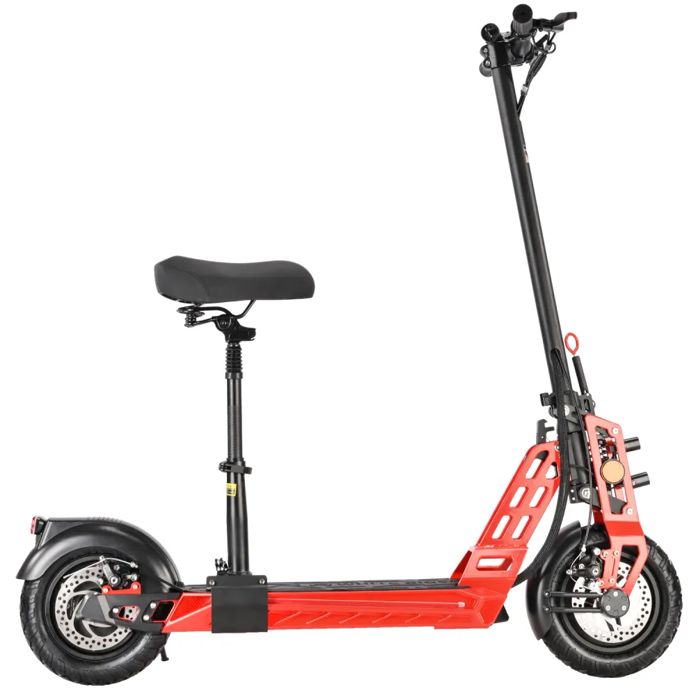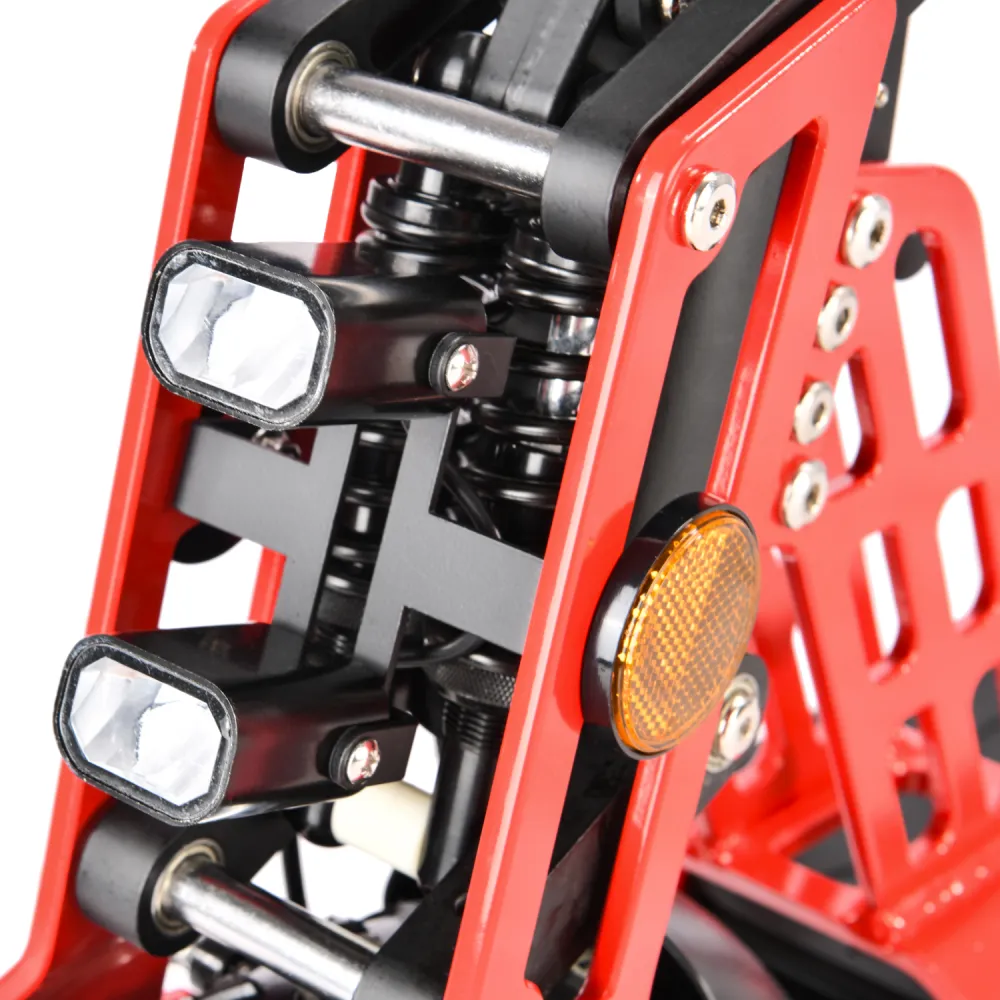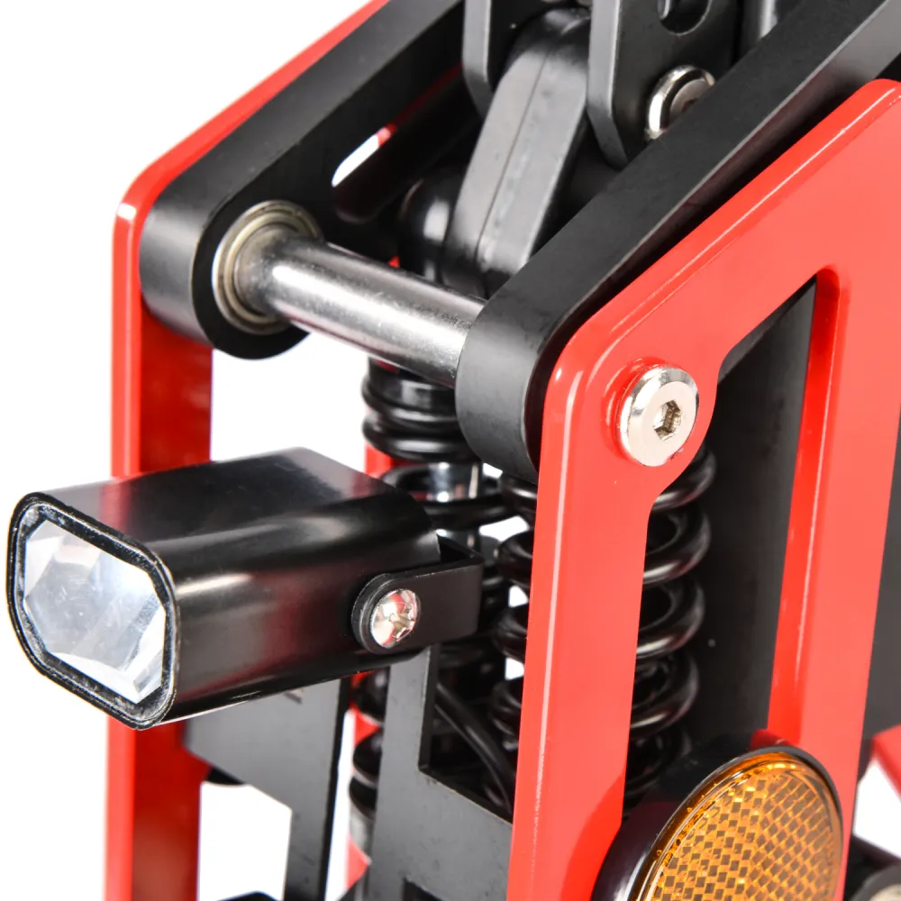 Электросамокат оснащен мягким сиденьем, повторяющим анатомические части тела, имеет подножку для парковки тс, удобную деку и рулевое управление. Современная оптика (фары со сверх яркими диодами, мощные стоп сигналы и светоотражающие полосы) делают электросамокат заметным, выделяют на фоне другой аналогичной техники.