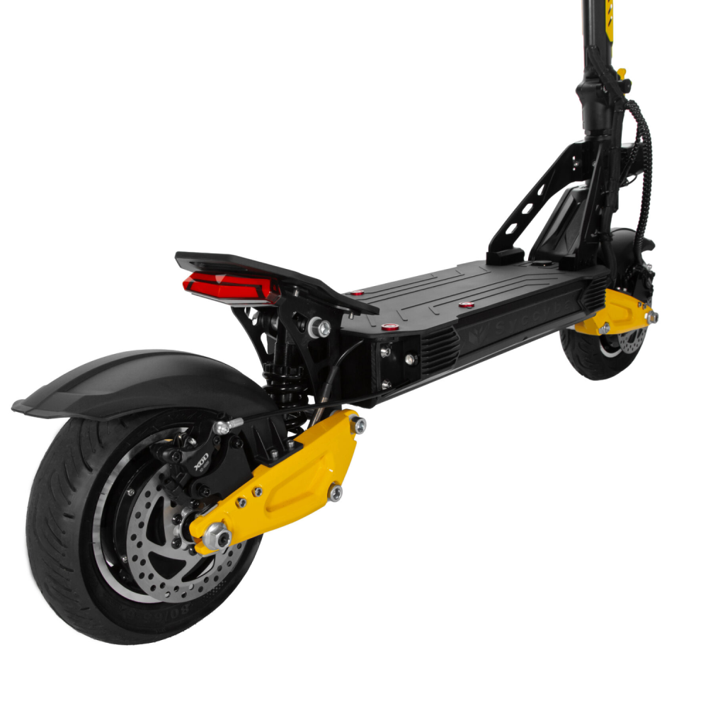 Электросамокат Syccyba M10 Flash Dual предлагает полноприводную систему мощностью 2400 Вт, запас хода до 70 км и скорость до 70 км/ч при весе всего 29 кг, что делает его оптимальным выбором для городских поездок и легкого бездорожья.