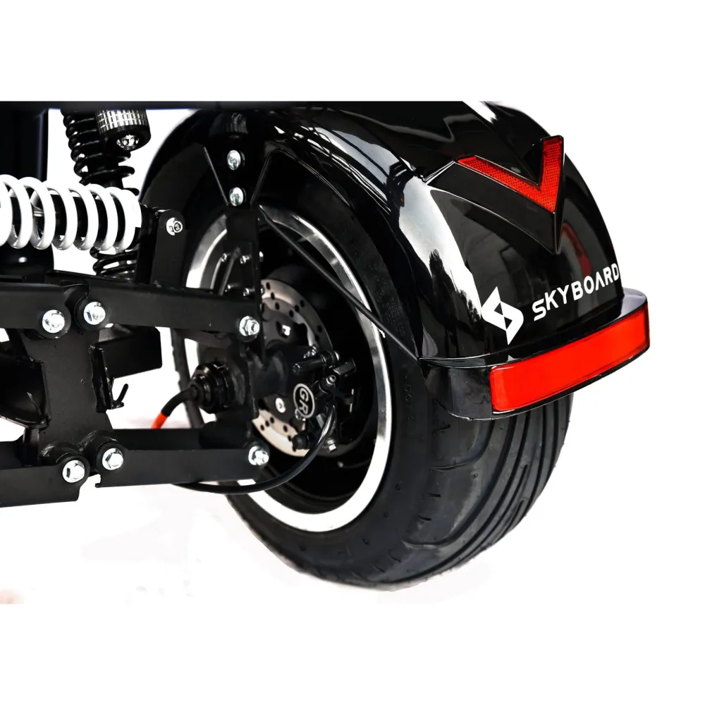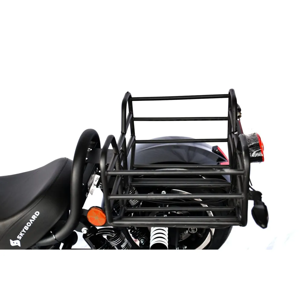 Трехколесный гибрид рассчитан для езды в пределах города и частного сектора. При мощности мотор-колес в 2000 Вт каждое модель способна развить скорость до 73 км/час и преодолеть расстояние до 49 км. Техника оснащена объемной корзиной, удобной для клади. Своевременность остановки гарантирована наличием профессиональной гидравлической тормозной системой. Удобство движения обеспечены большим комфортабельным седлом, повторяющим анатомические части тела и широкой платформой для ног. Практический опыт пользователей доказывает, усталость и проблемы с позвоночником при дальней езде исчезают.