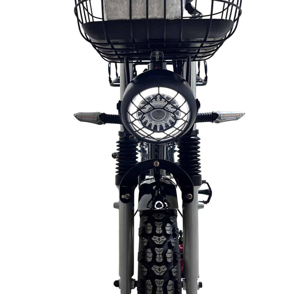 Багажник, корзина и подножка — удобно для перевозки вещей и повседневного использования.