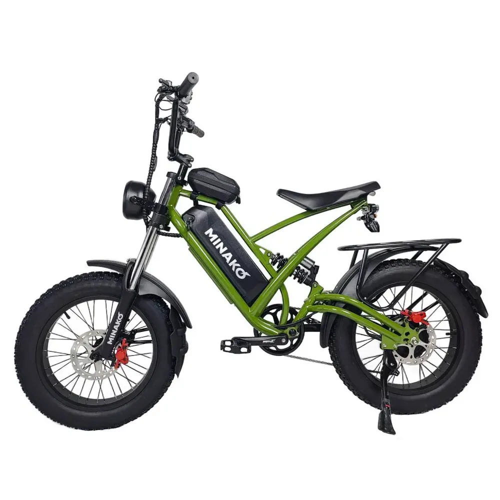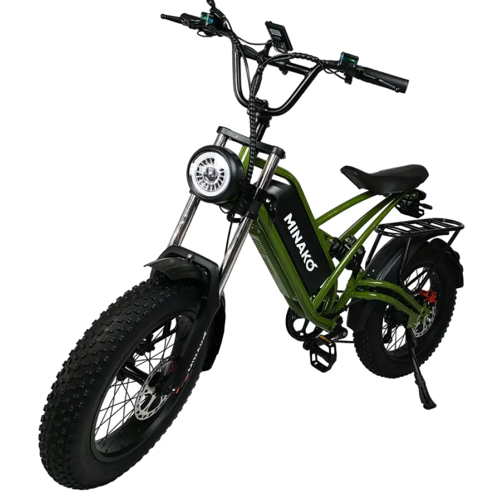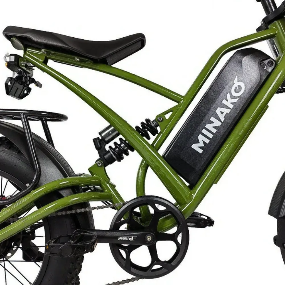 Электровелосипед Minako FOX (23Ah) в цвете "Хаки" - это идеальный выбор для всех, кто ищет сочетание стиля, скорости и дальности поездок.