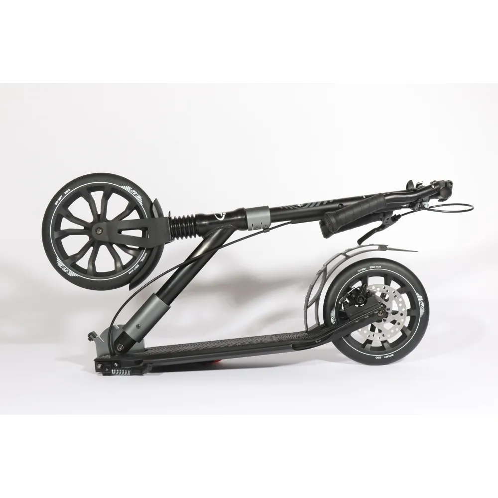 Самокат SPORT 250R black – идеальный вариант техники для отдыха. Желаете разнообразить жизнь подростка, предлагаем обратить внимание на указанную модель. Небольшой по массе самокат (6,5кг) рассчитан для детей возрастом от 9 лет, безопасный при передвижении, не вызывает дискомфорта и усталости. Познакомиться с дизайном, техническими характеристиками и особенностями техники предлагает наш интернет-магазин.