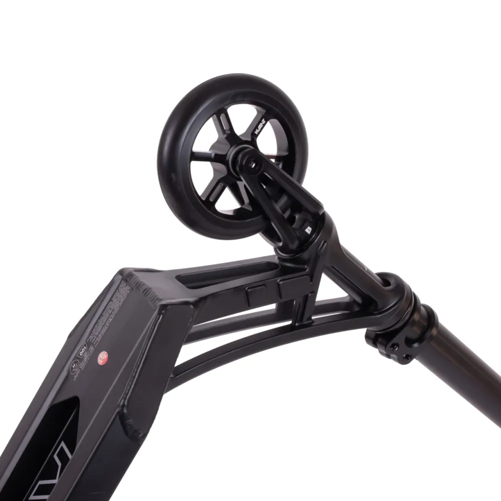 Стабильность и лёгкость управления обеспечиваются благодаря алюминиевой конструкции руля и деки. Руль высотой 620 мм и шириной 550 мм выполнен из прочного, но лёгкого материала, что снижает общий вес самоката до 2,812 кг. Это позволяет райдерам легко выполнять трюки и маневры. Дека шириной 120 мм и длиной 490 мм обеспечивает достаточно места для уверенного управления, а длина футспейса 330 мм обеспечивает удобство при приземлении.