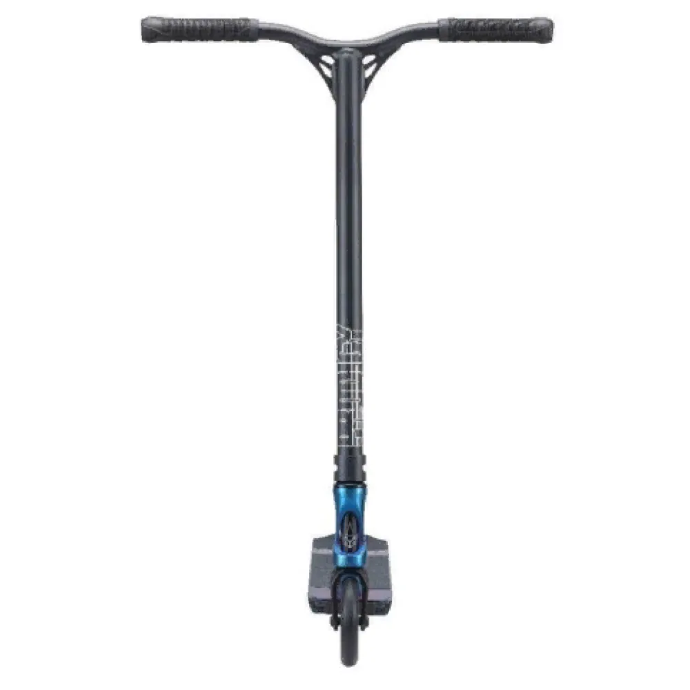 Самокат изготовлен из облегченного алюминия, весит 3,48 кг, долговечный в эксплуатации. Технические характеристики позволяют выполнять сложные трюки, прыжки, в том числе и с кручением. Нескользящая дека – широкая и устойчивая, исключает случайные падения и другие непредвиденные действия со стороны трюкача.
