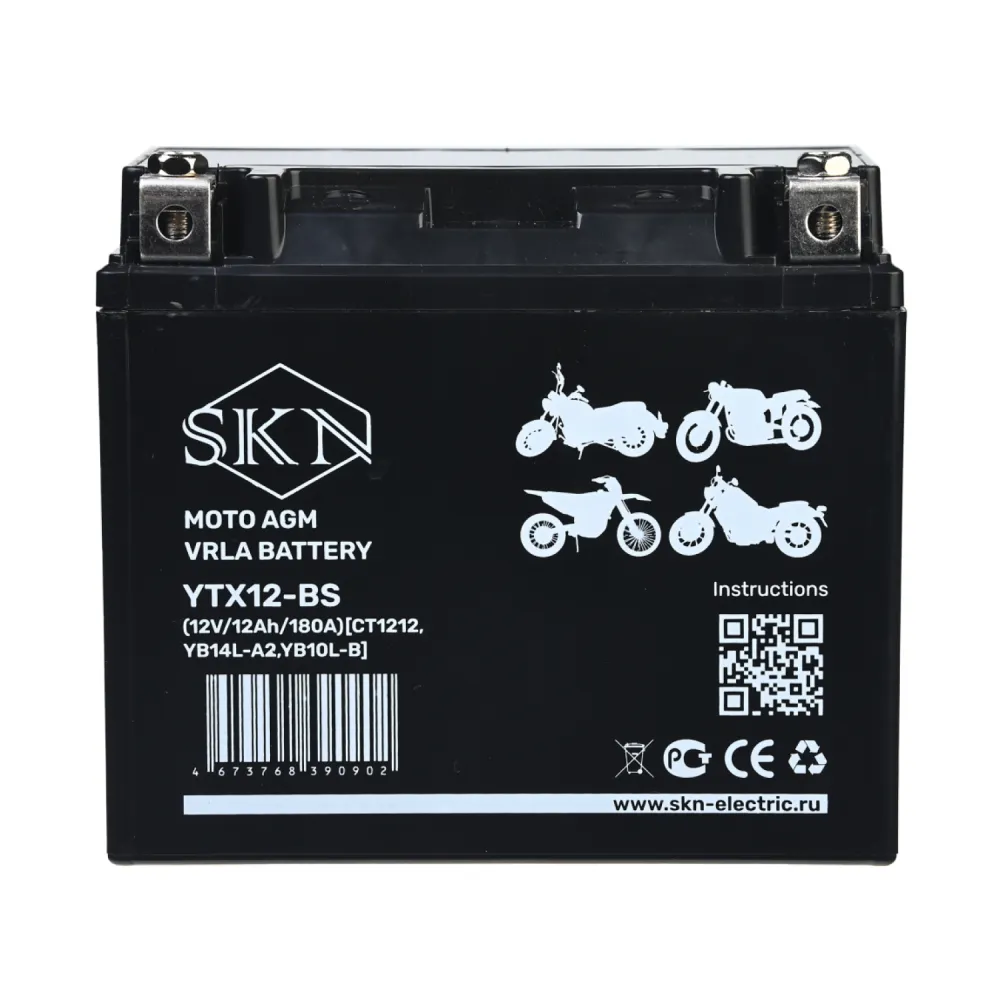 Аккумулятор стартерный для мототехники SKN YTX12-BS (12V/12Ah/180A) [CT 1212, YB14L-A2, YB10L-B]